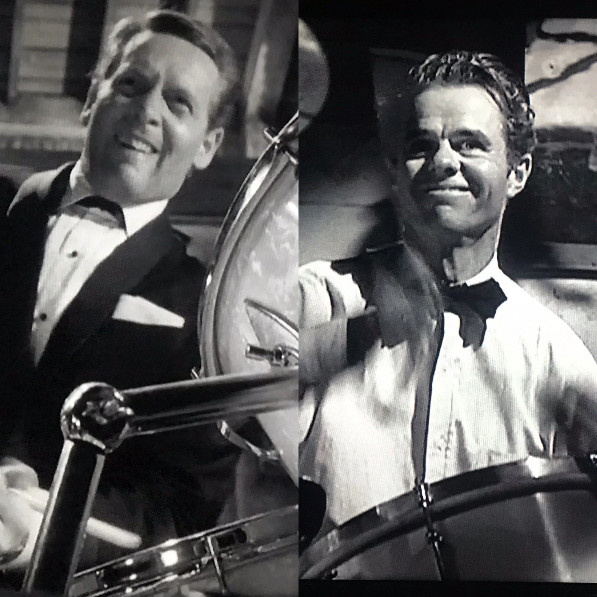 As Sapphire more explicitly used racial tensions, it also literally used color in what was the then novel Eastmancolor film stock (introduced in 1950). Yet for All Night Long, released three years later, Dearden goes back to the contrasts of black and white stock that were so strikingly highlighted in American noir films of the 40’s. Referencing the title character, and the race tensions of the play, in many ways All Night Long riffs on the noir genre. Although in the Dearden film, the usual lead of Othello is subjugated to the scheming Iago of Johnny Cousin (with McGoohan literally bouncing like a drumstick as the wired sociopath), Cousin is not portrayed as a sympathetic character, but more like a flawed, emotionally weak, bully (think Richard Widmark in Night and the City or Kiss of Death). From the oblique, interesting angles, and constantly moving visuals, to the underlying tension and deceptive activity by Cousin, Dearden and Relph appear to take the progressive racial stance of Jarrico and King, and fashion it into a then-contemporary take on classic noir. Like the best of that style, the dynamic camera movement and most significantly, the amazing jazz musicians and music (taking the cue from Elisha Cook Jr.’s drummer in Robert Siodmak’s Phantom Lady from 1944 – see Fig. 2), become more frenetic and percussive, and heighten the tension, as the personal conflicts and emotions become more heated. Adding to the atmosphere is the constant flow of “juice,” and smoking of pot by Cousin and Cass, and the continual downpour and thunder of the late-night rainstorm. Only Delia’s silky rendition of the title track, All Night Long, softens and smooths over the emotional stirrings, at least temporarily. Even the ending seems to borrow from the ambiguous and uncomfortable conclusion of often-filmed noir master penman Cornell Woolrich’s I Married a Dead Man(1948), where the husband and wife’s future looks uncomfortable and uncertain in the face of their mutual feelings of both love and mistrust.